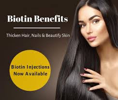 Biotin injections also support healthy cell growth and the reaction of amino acids. Amino acids play vital roles in building up proteins (cell strength) resulting in the repairing of hair, skin and nail health.
